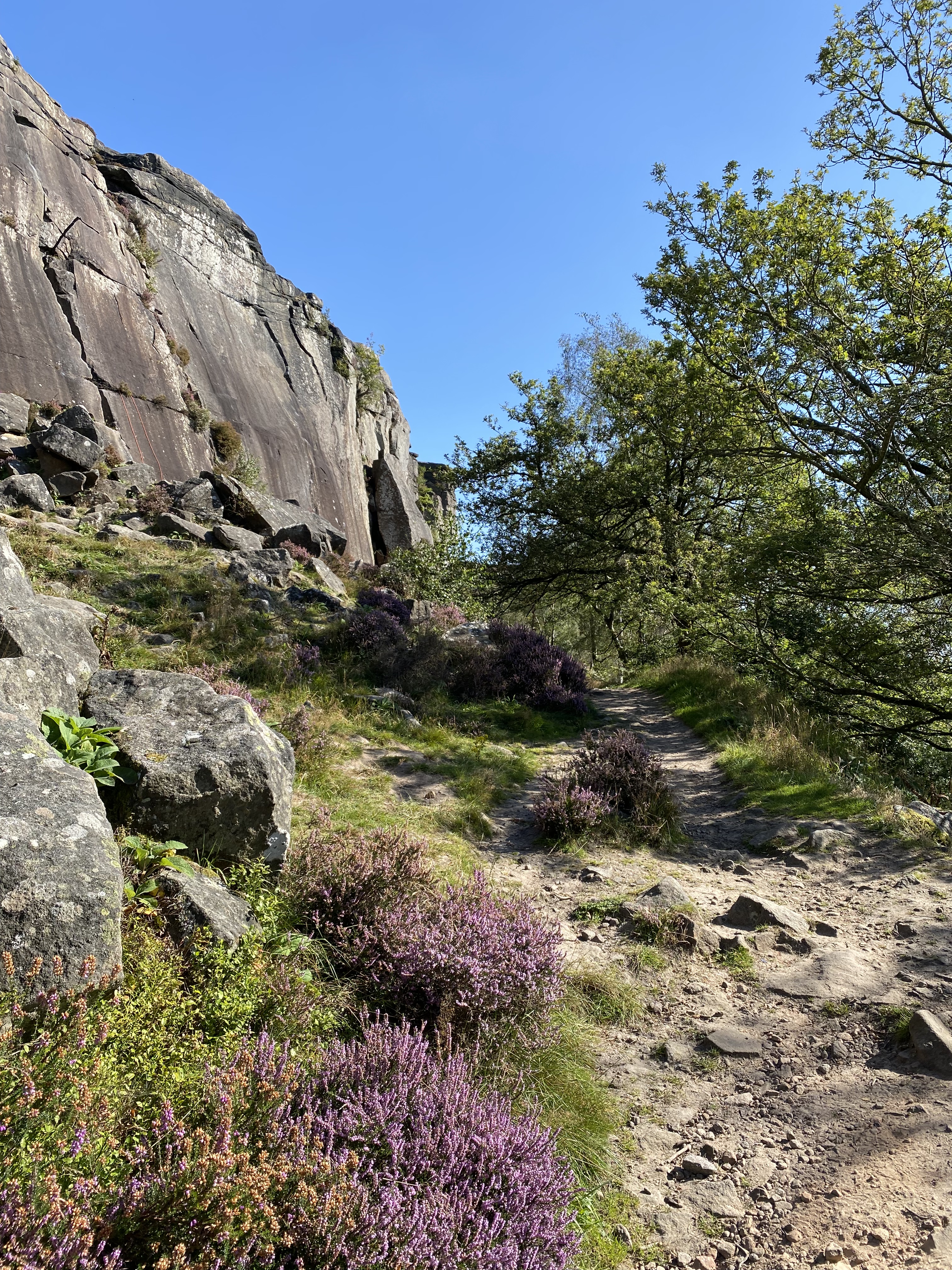 Path up hill to stony cliff.