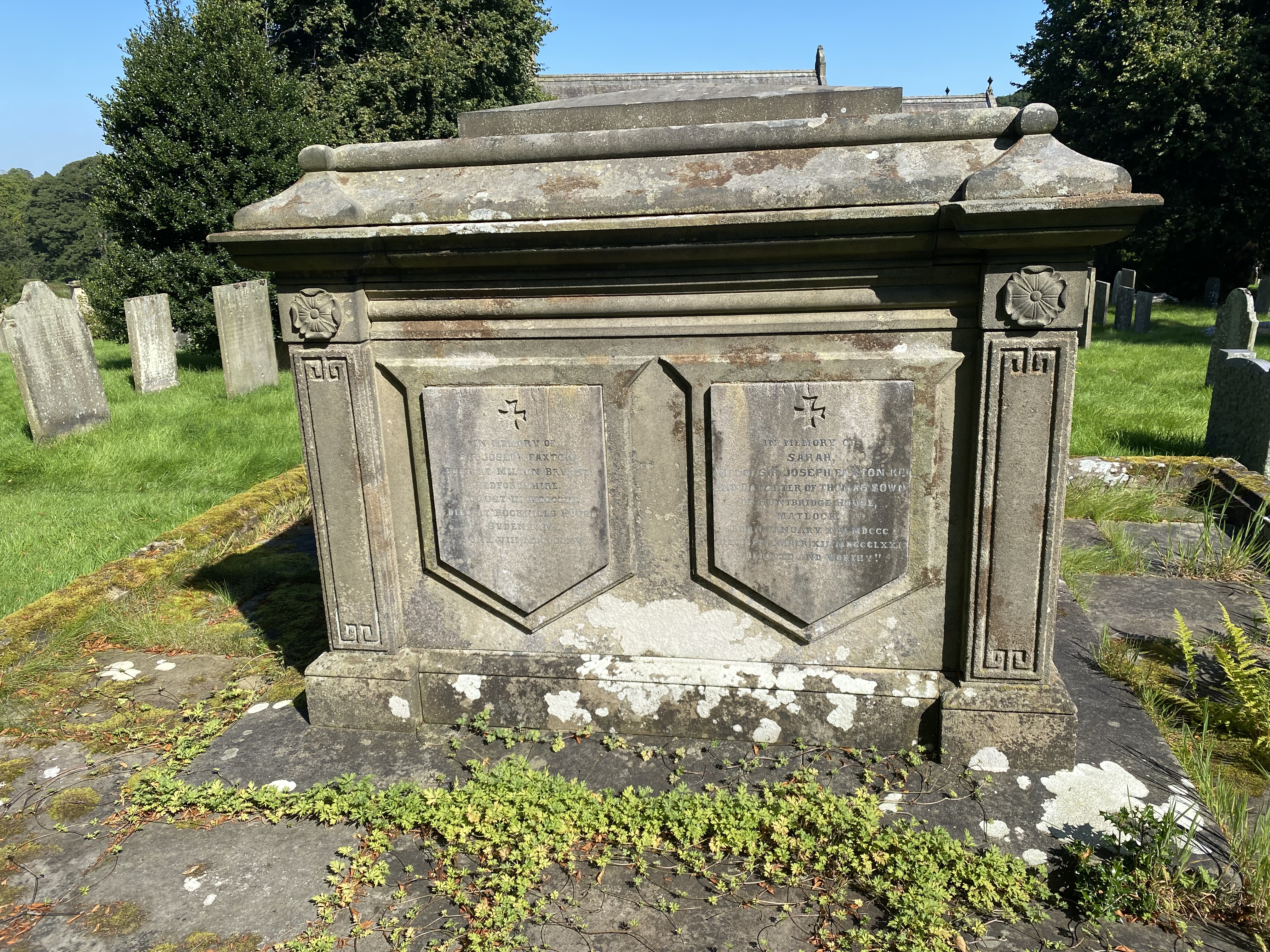 Memorial for Joseph Paxton and his wife, in the Edensor cemetery.